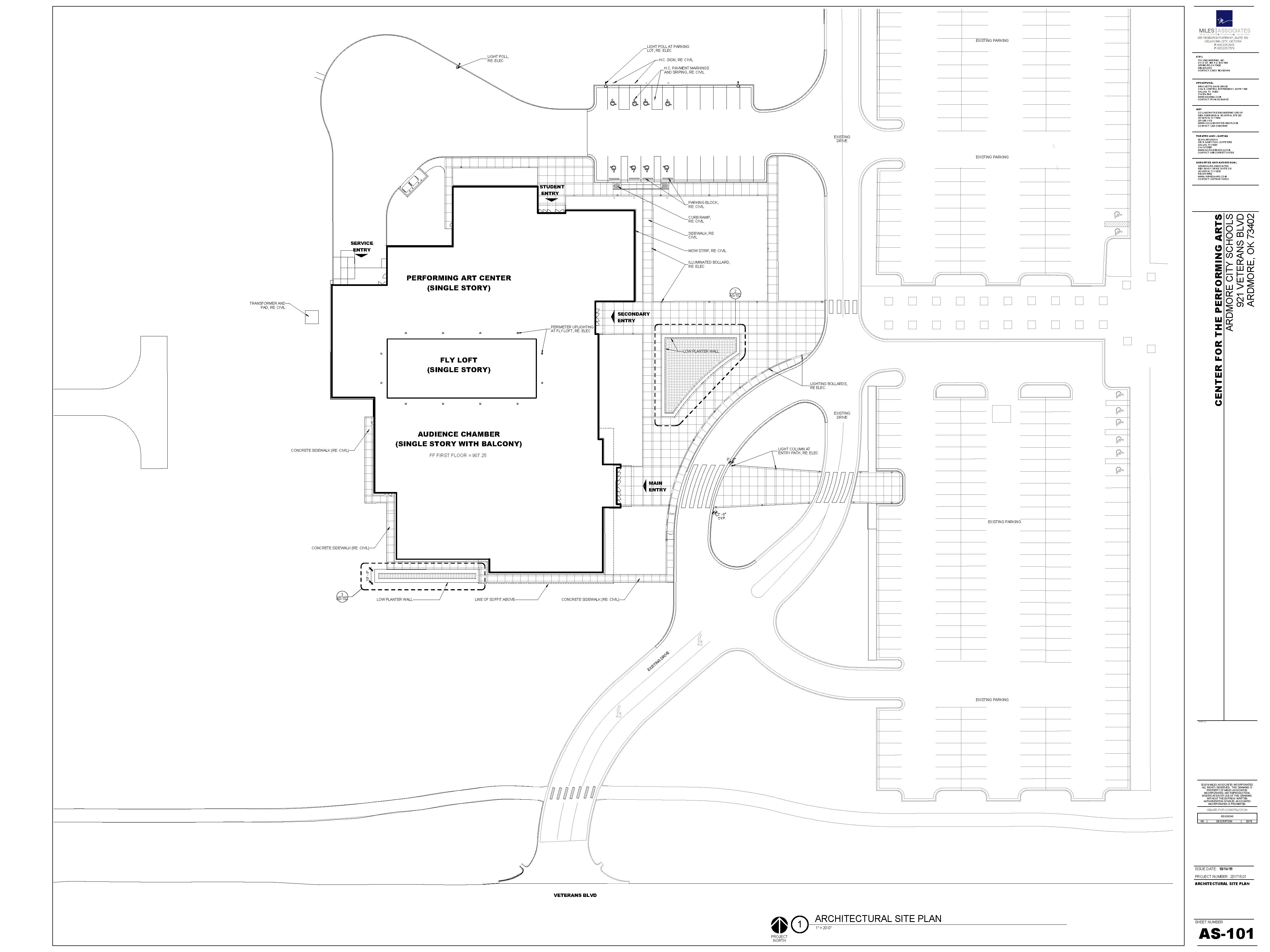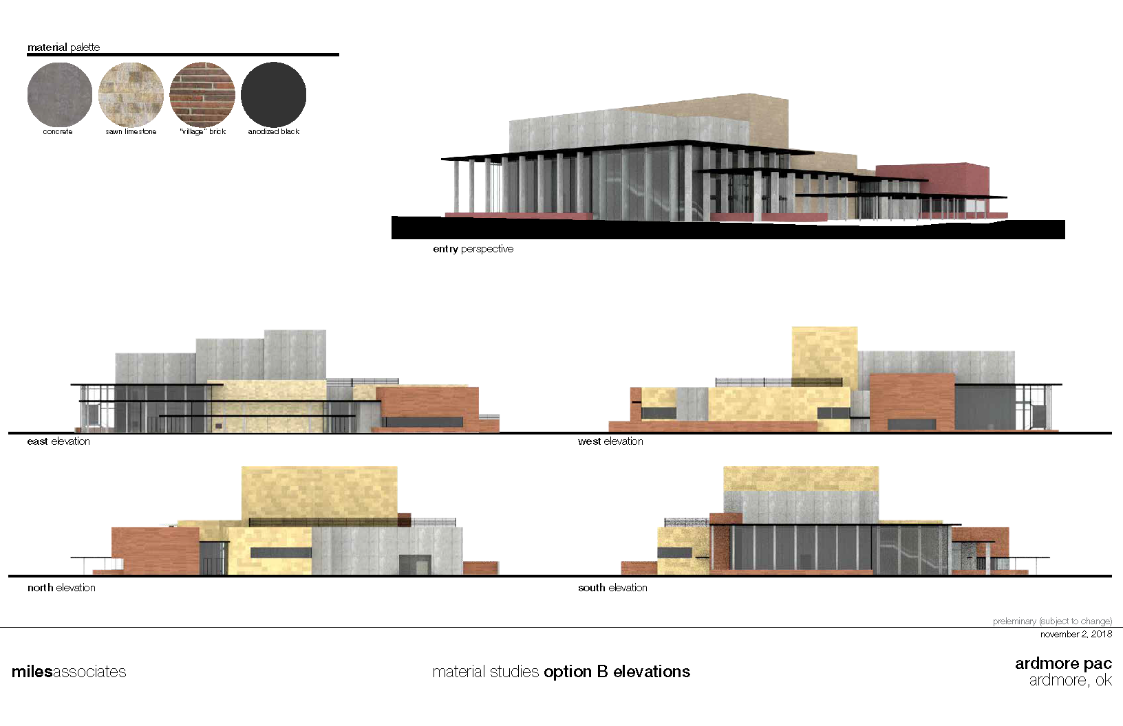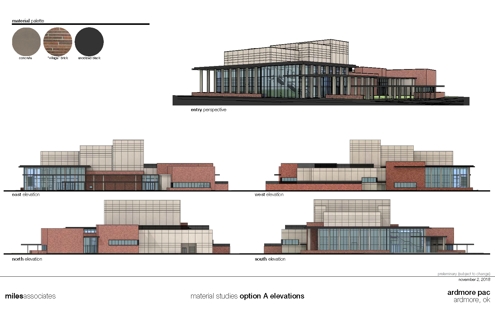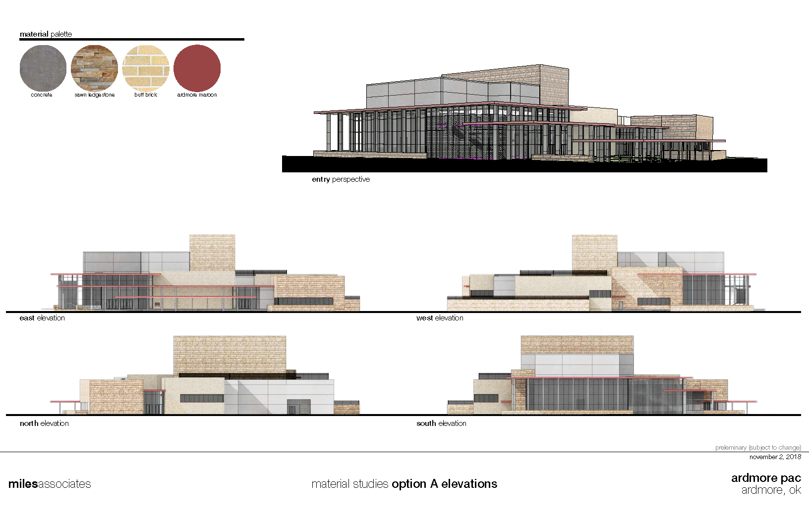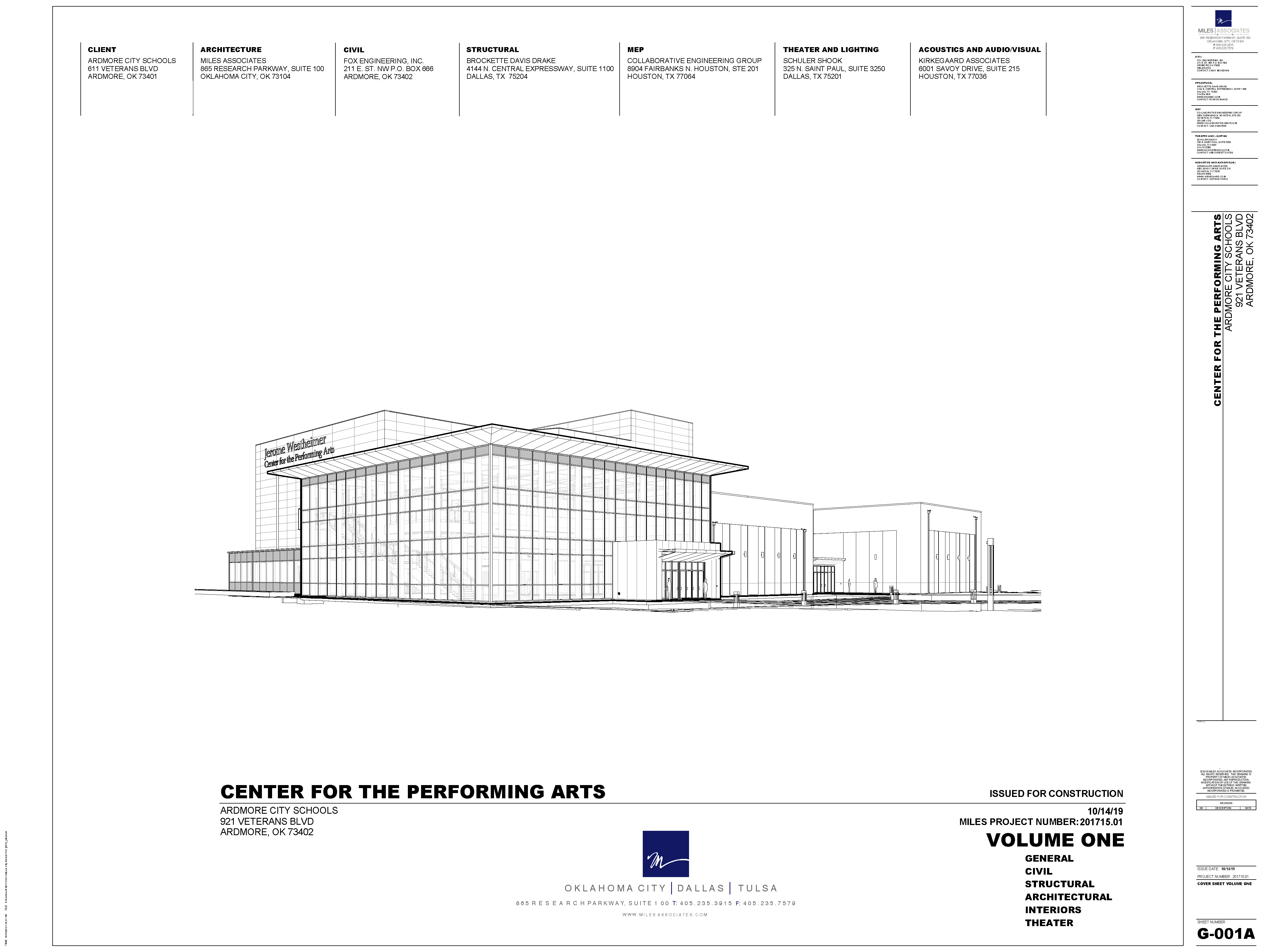 The rural community of Ardmore and the surrounding area passed a bond issue to dramatically expand their arts and culture facilities in this phased performance and educational center. The Jerome Westheimer Center for Performing Arts is divided into two primary uses: education and live performance with future expansions planned for theater in the round and additional rehearsal space. My role ranged from selecting materials and sketching/rendering to developing wall sections and detailing, construction documents and coordination. I was part of a 6-8 person team and responsible for sections, elevations, detailing and coordination.
